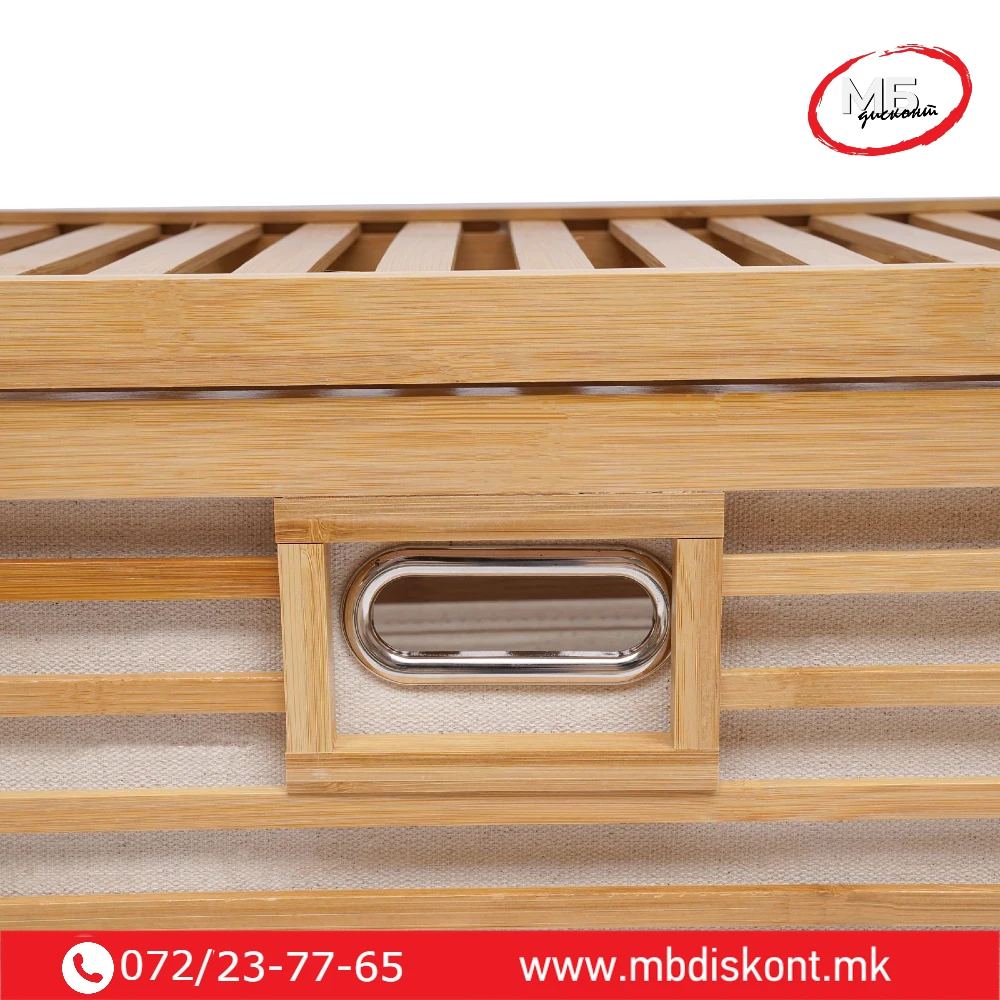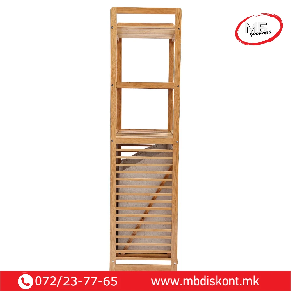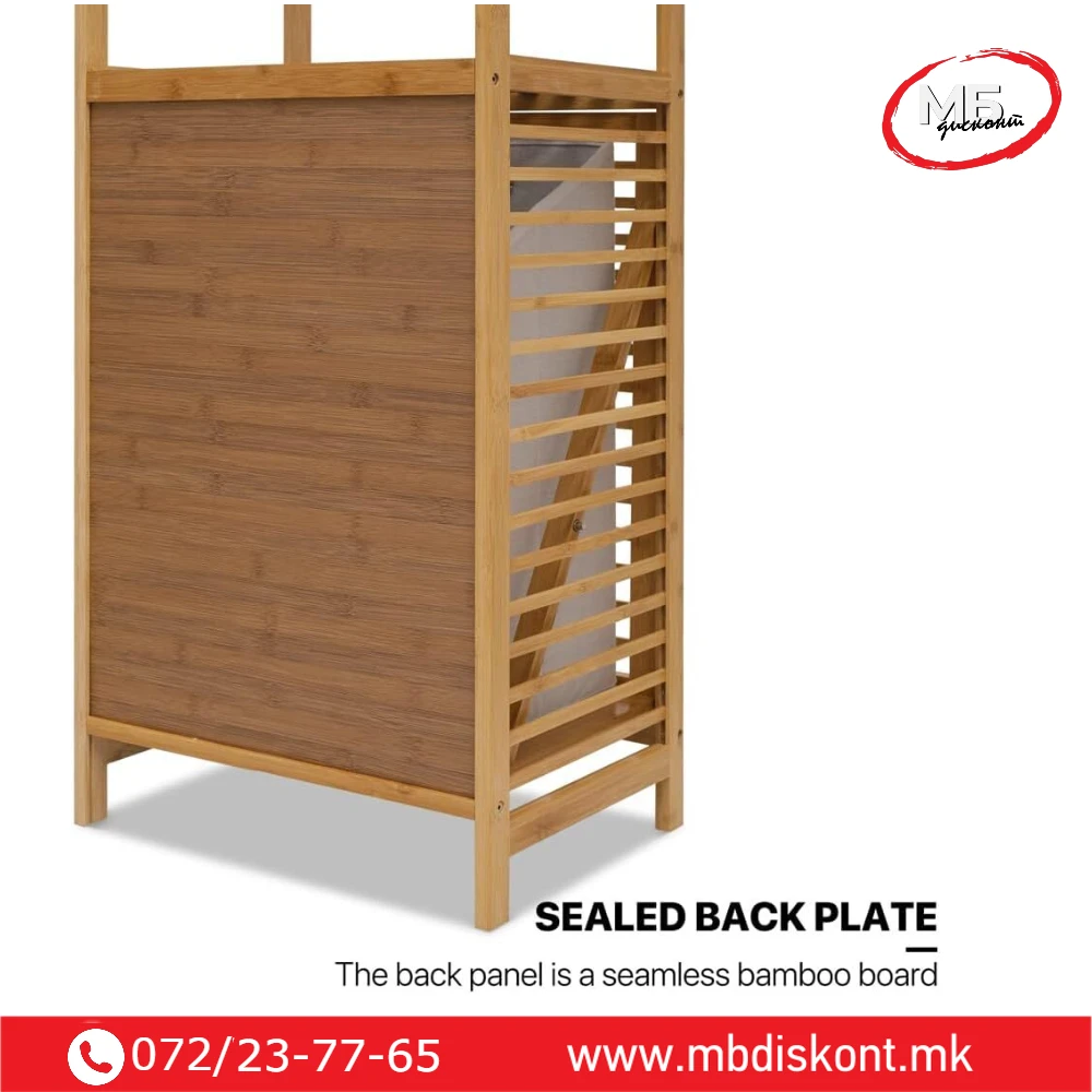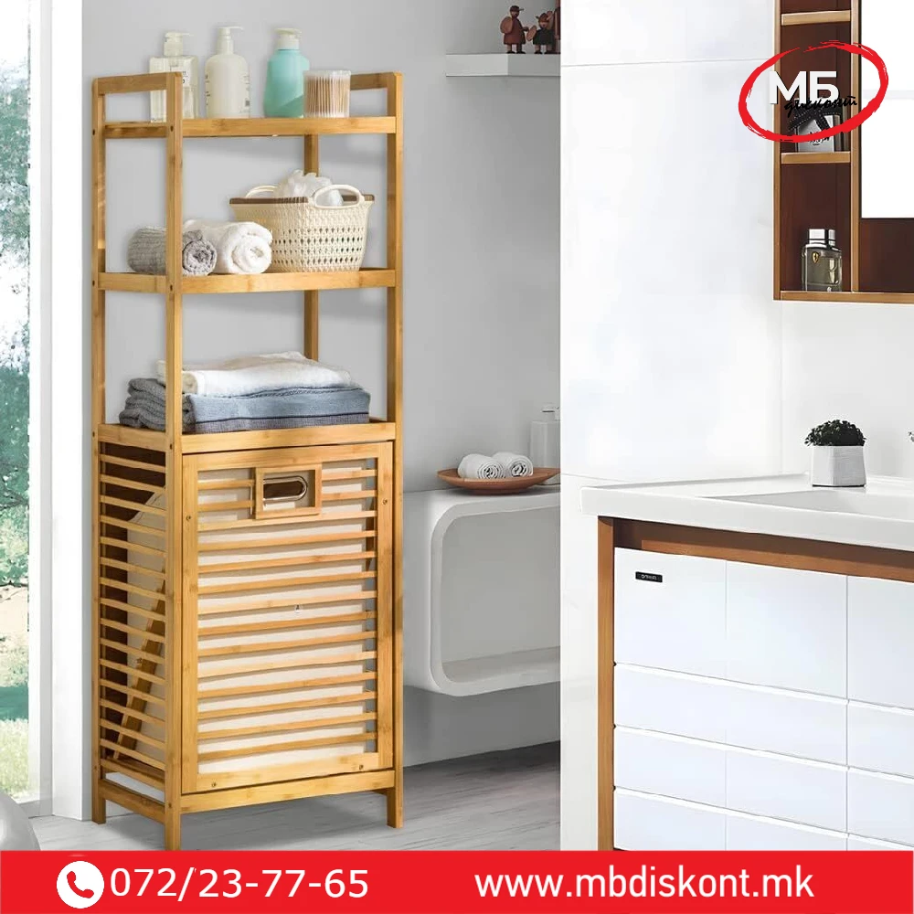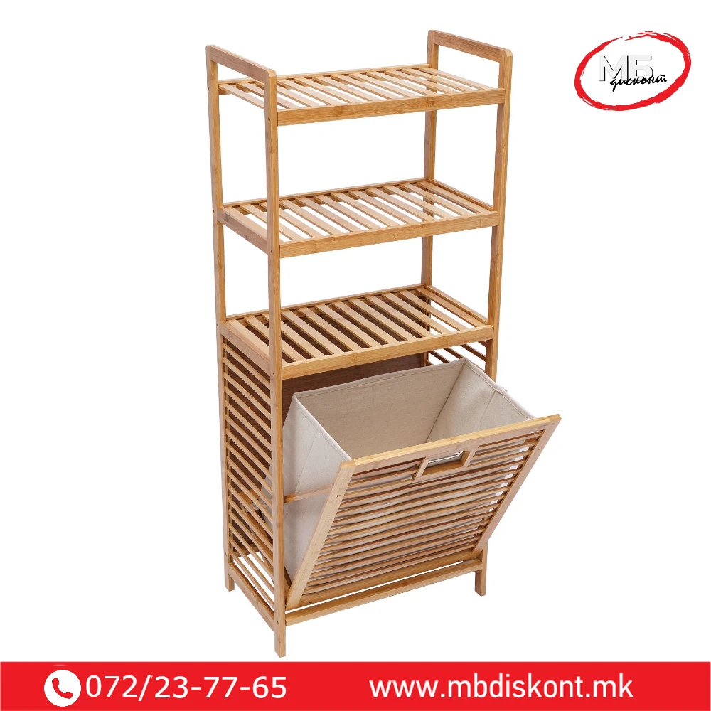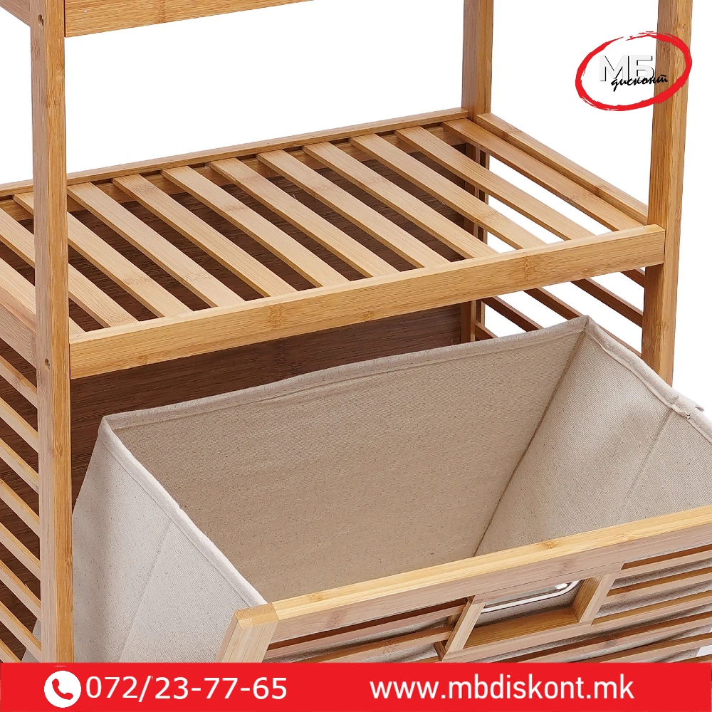 🛒 Организирајте го вашиот простор лесно и стилски со бамбус корпата за алишта со полици.