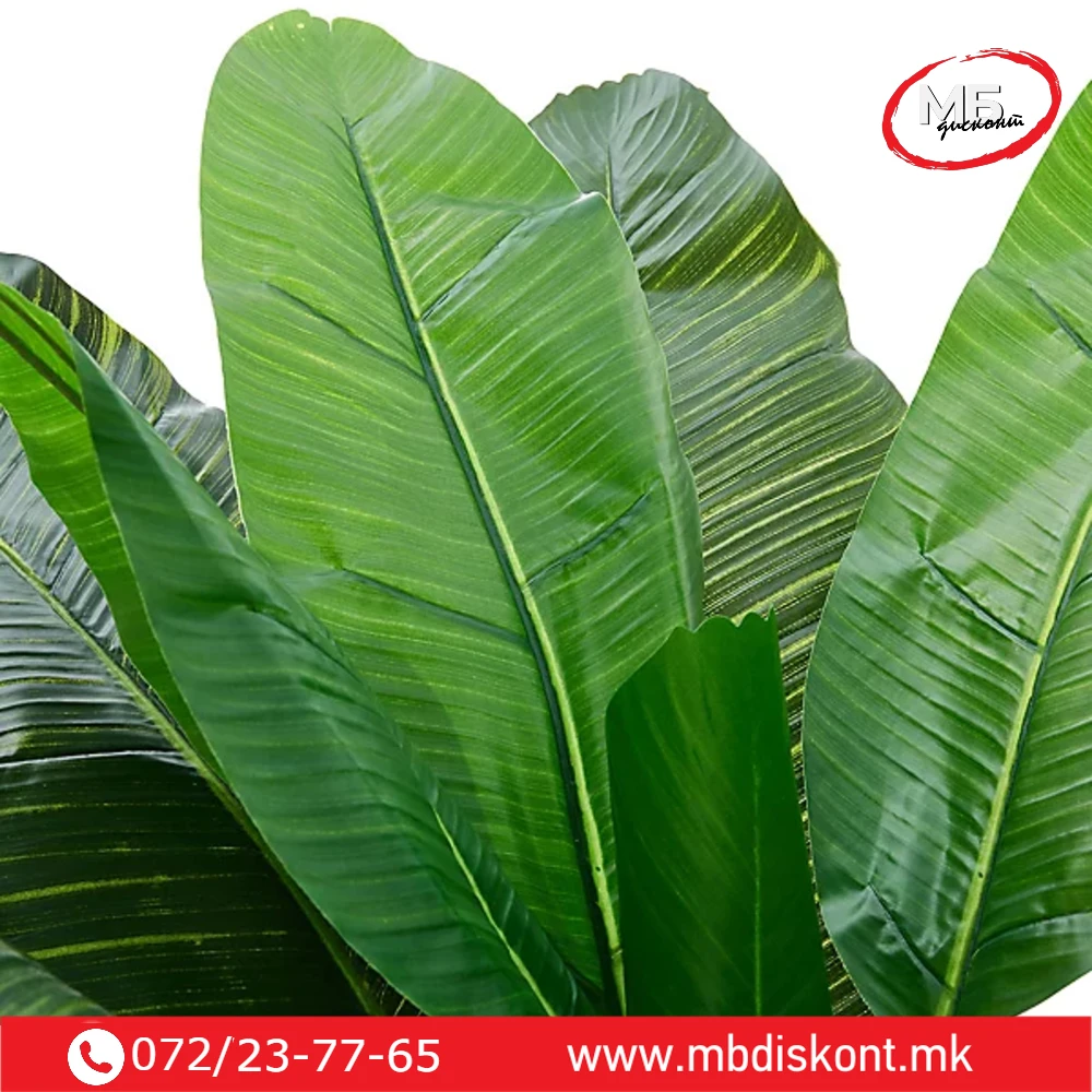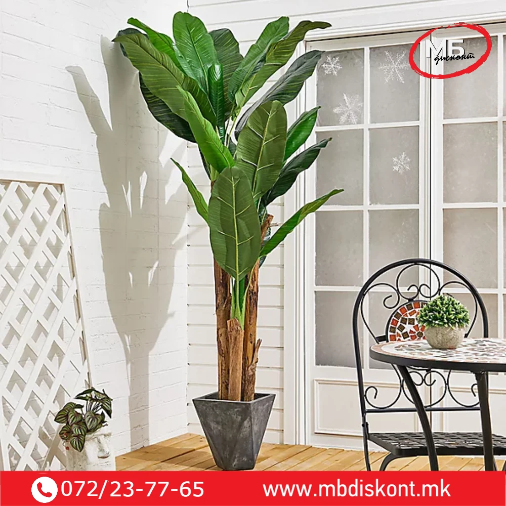 Вештачкото банана дрво е одличен избор за секој што сака свеж и модерен изглед во просторот, без дополнителна грижа. Со големи и бујни зелени листови, ова декоративно растение внесува чувство на природа и елеганција во домот, канцеларијата или деловниот објект. Благодарение на внимателно дизајнираните детали, дрвото има реалистичен изглед кој тешко се разликува од природно растение.