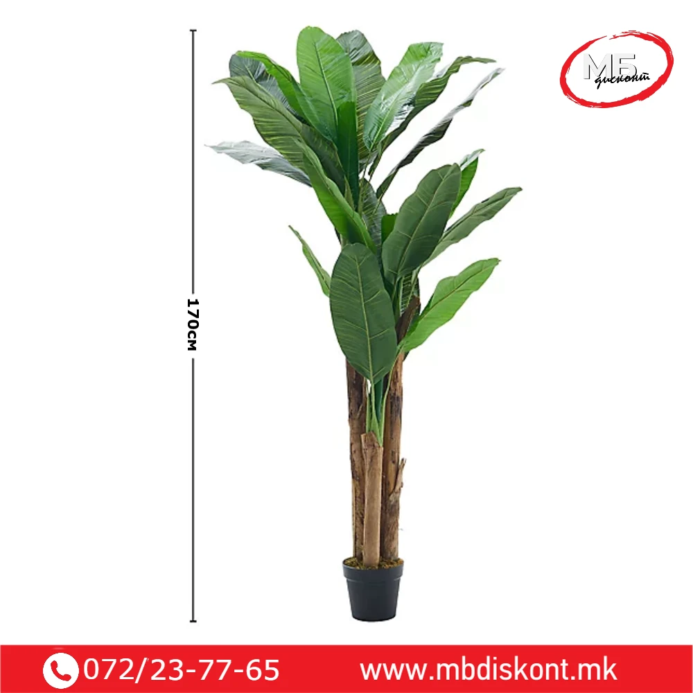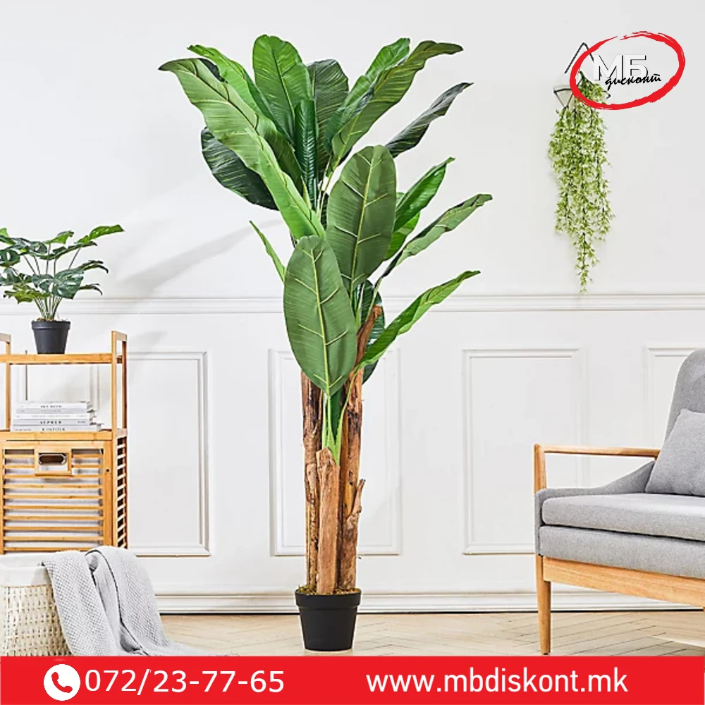 Вештачкото банана дрво е погодно за внатрешна и надворешна употреба. Совршено се вклопува во дневни соби, ходници, канцеларии, ресторани, хотели, салони, како и за настани, свадби и прослави. Благодарение на неговата висина, не изгледа премногу мало и претставува впечатлив декоративен елемент во секој простор.
