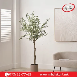 Вештачкото маслиново дрво е идеално решение за оние кои сакаат зеленило без обврска за редовна нега. Не бара наводнување, сончева светлина или кастрење. Доволно е повремено да се исчисти со мека и сува крпа. Благодарение на својата неутрална и елегантна форма, лесно се вклопува во модерен, минималистички или класичен ентериер.