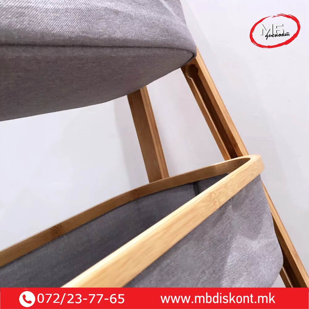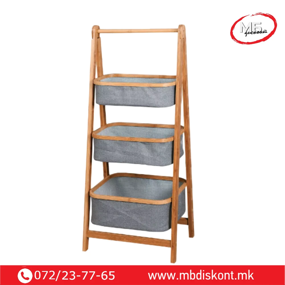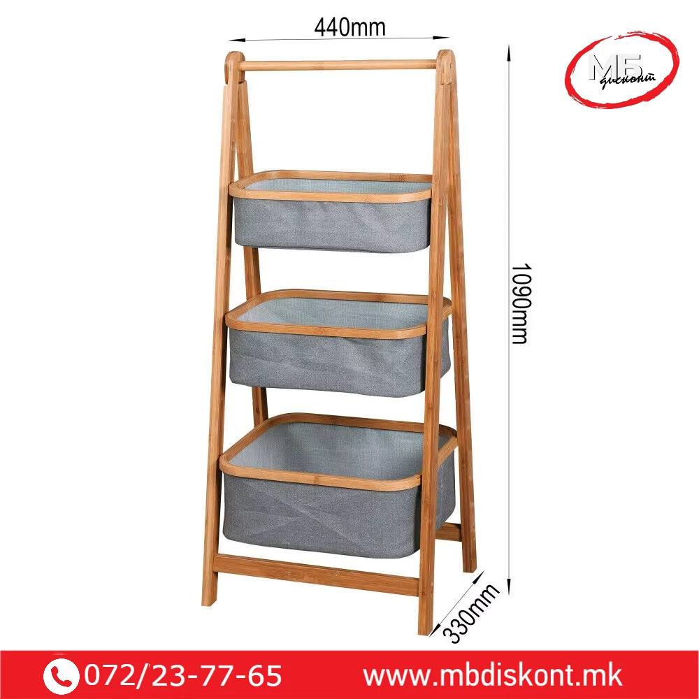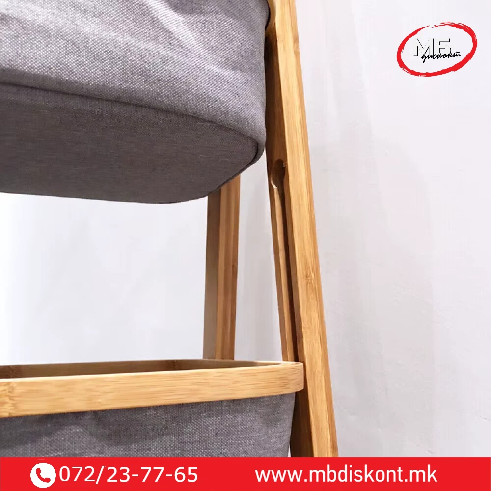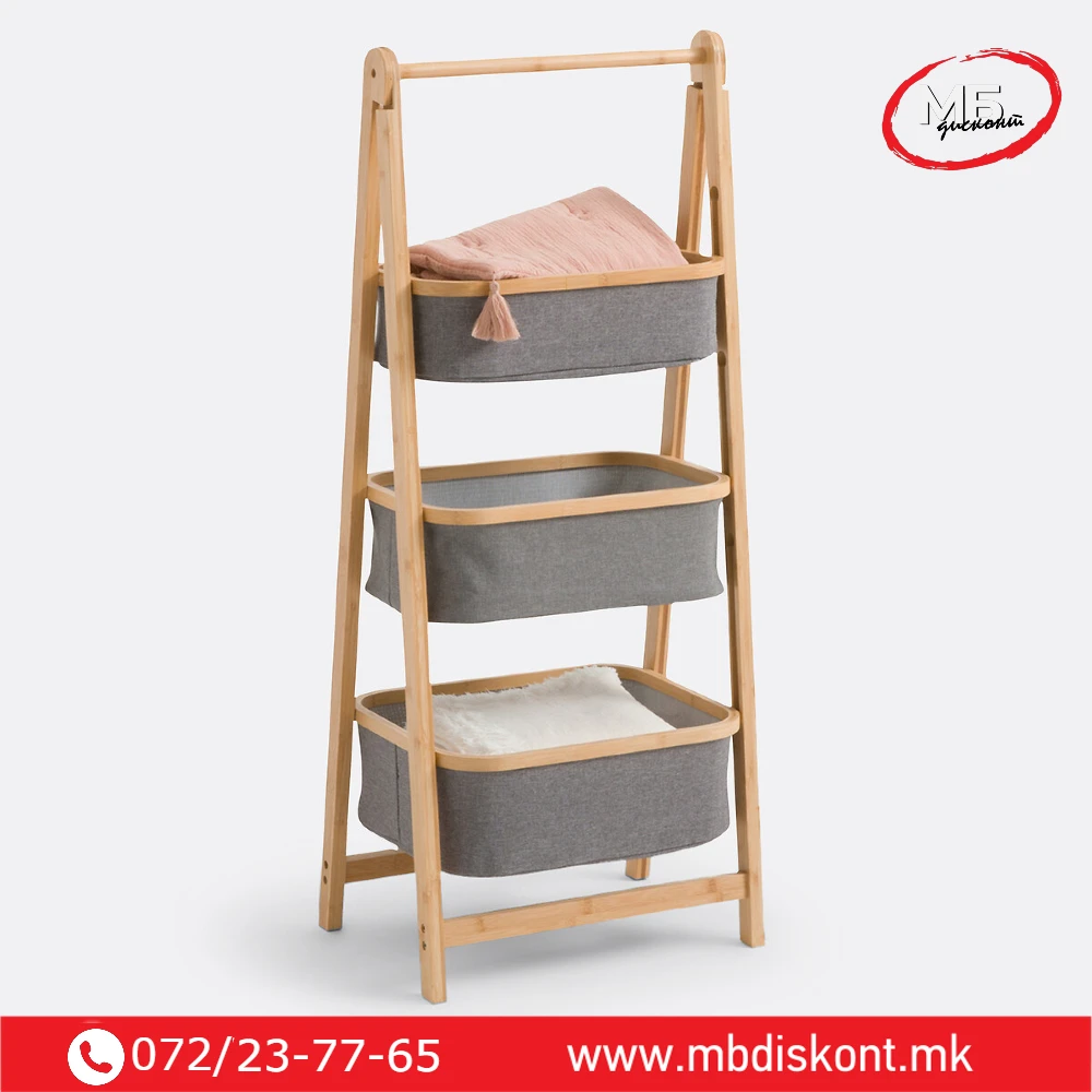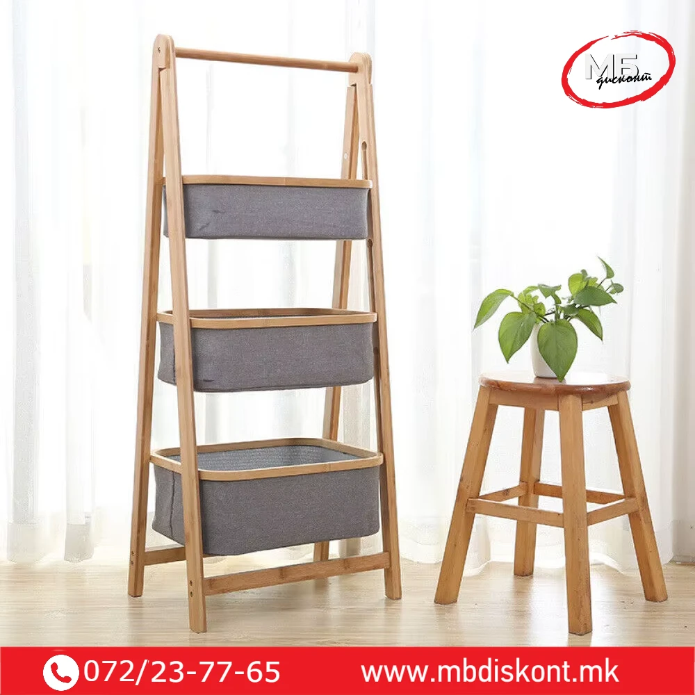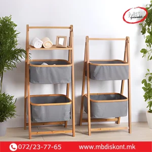 | 🧺 3 корпи | 45 × 35 × 109 cm | Бамбус / текстил | 3 текстилни корпи со дрвена рамка |