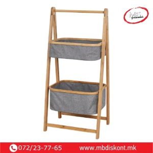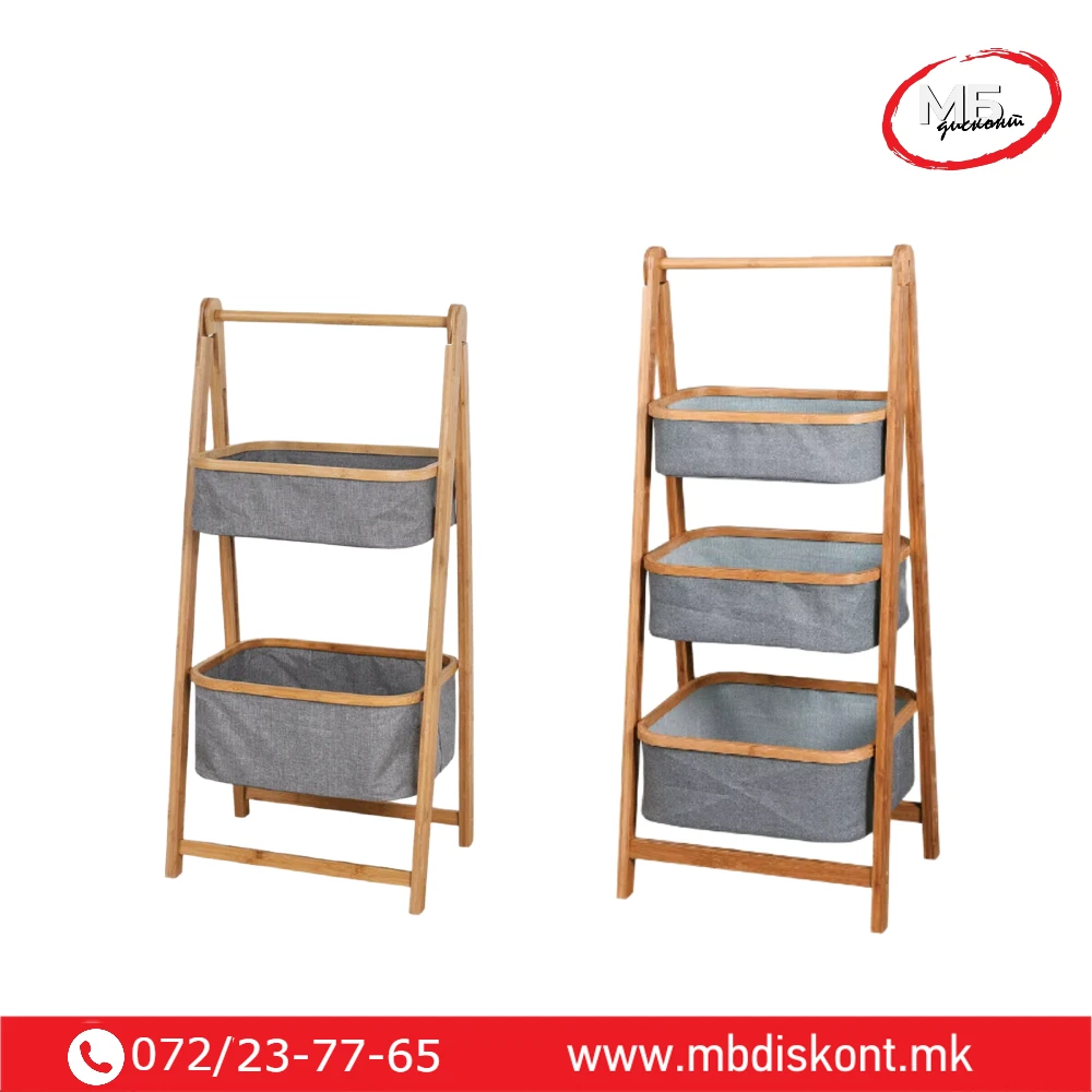 Бамбус полица со корпи претставува практично и естетско решение за уредно складирање во секој дом.