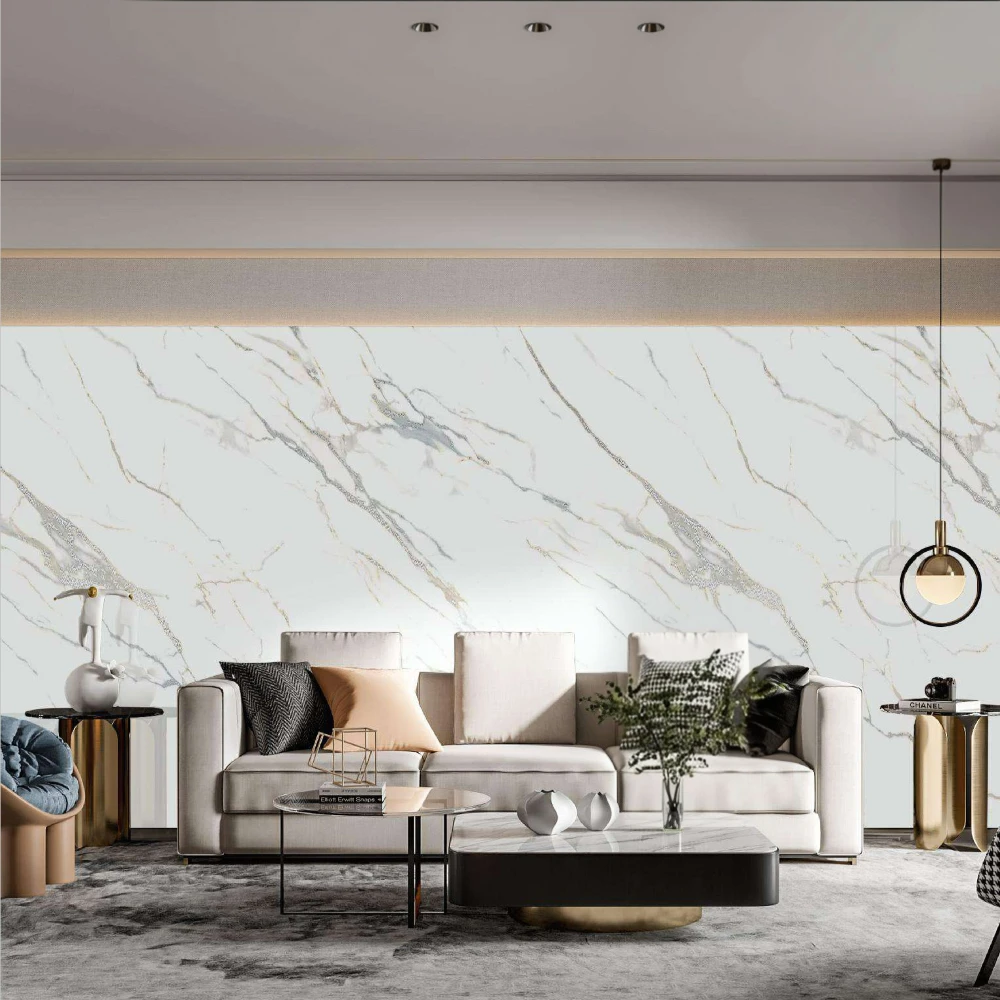 ПВЦ Панел Lunara со изглед на мермер претставуваат современо решение за внатрешно уредување кое ја комбинира елегантноста на природниот камен со практичноста на пластичните материјали. Овие панели се идеален избор за сите кои сакаат да постигнат луксузен изглед во својот дом или деловен простор без високите трошоци и комплексната монтажа на вистински мермер. Со димензии од 1220mm ширина и 2900mm висина, овие панели нудат доволно покривање за различни површини со нивниот деликатен бел дезен со сиви и златно-бежови венчиња.