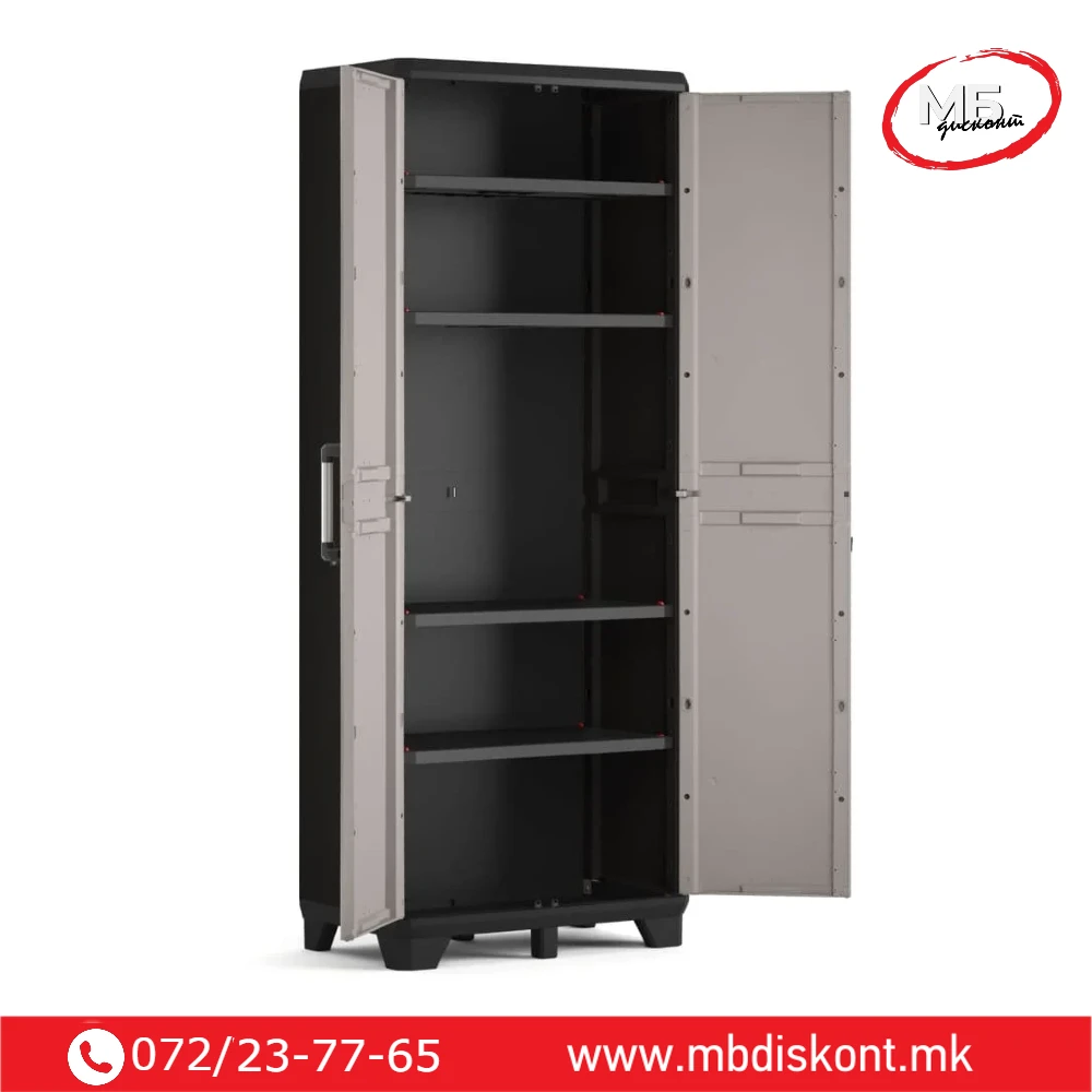 Пластичен висок ормар со полици Keter Pro е практично и сигурно решение за организирано складирање во домот, гаражата, балконот или терасата.