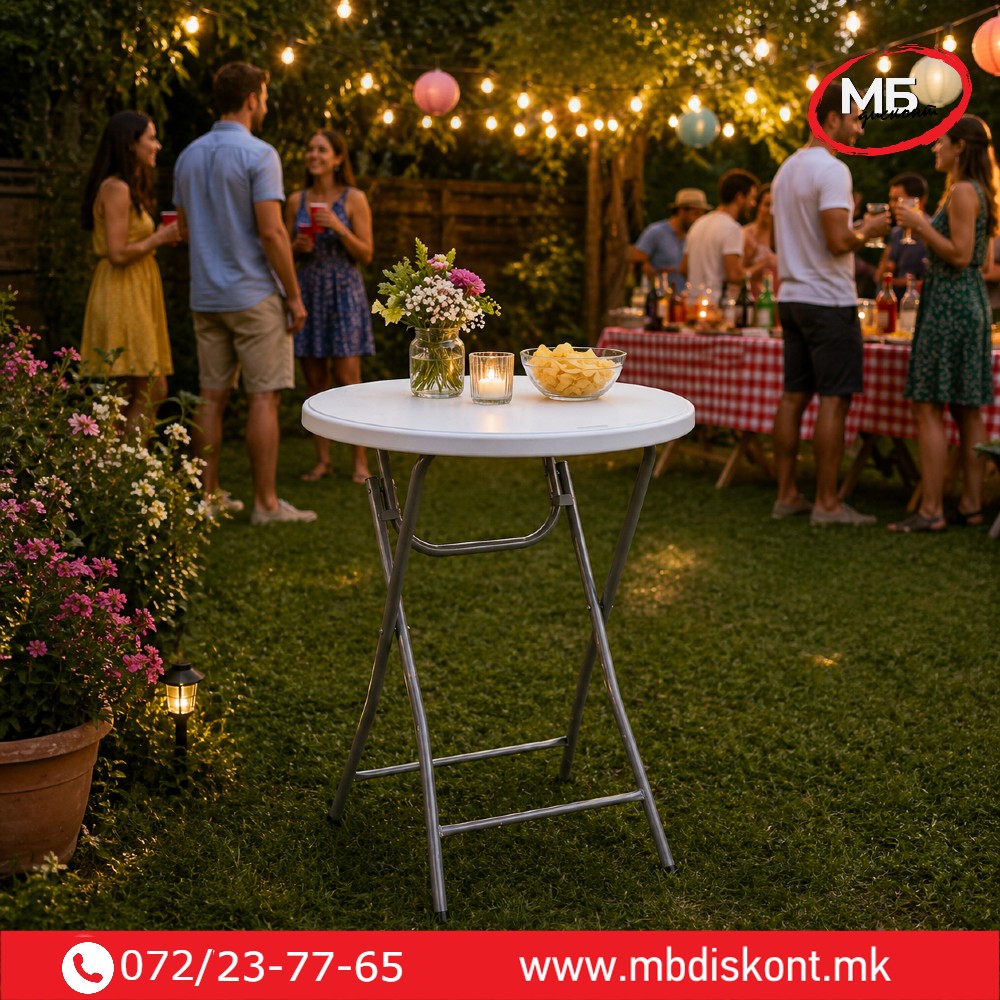 Изберете склоплива коктел маса и обезбедете функционален и елегантен простор за вашите гости.