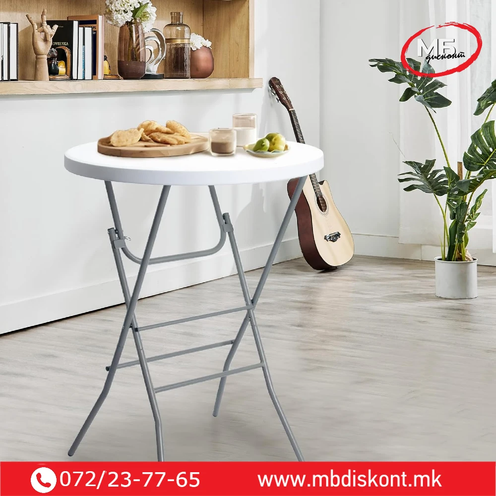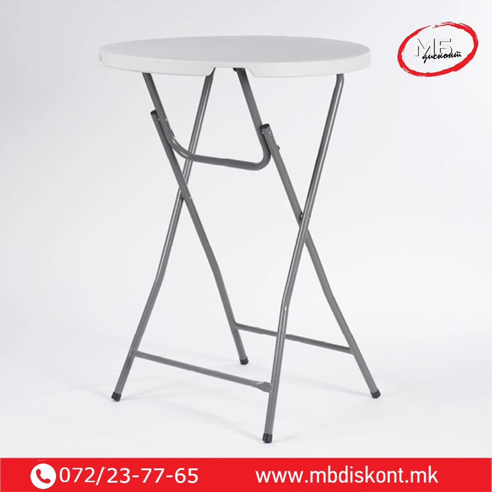 Оваа склоплива коктел маса (статафел) е практично и елегантно решение за настани, саеми, прослави и деловни презентации.