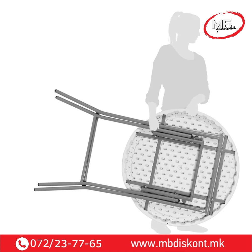 Масата е лесна за транспорт и складирање благодарение на склопливиот механизам, што ја прави идеален избор за професионална и приватна употреба.