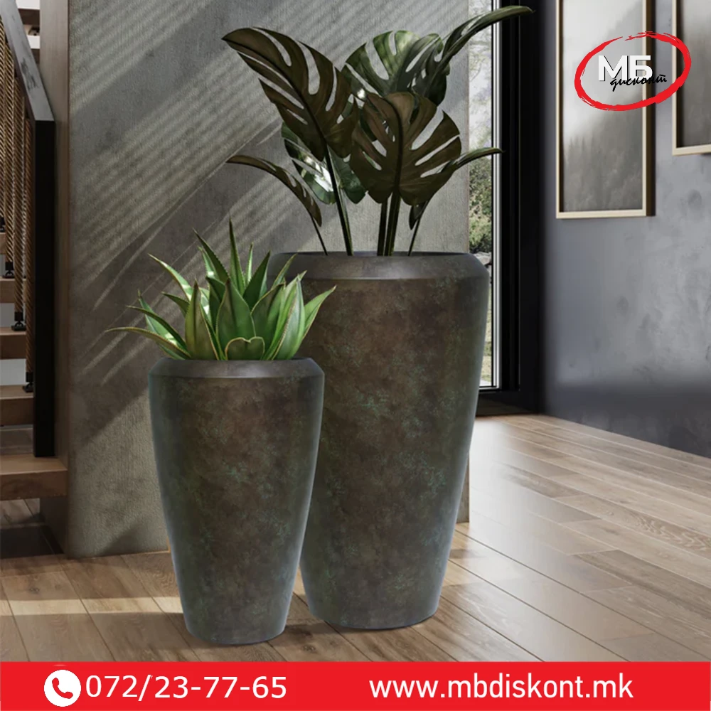 Со својата висина и издолжена форма, оваа саксија е идеална за украсни дрвца, високи растенија и богати цветни аранжмани. Благодарение на цврстата конструкција, таа е погодна за внатрешна и надворешна употреба, без ризик од пукање или губење на бојата со тек на време.