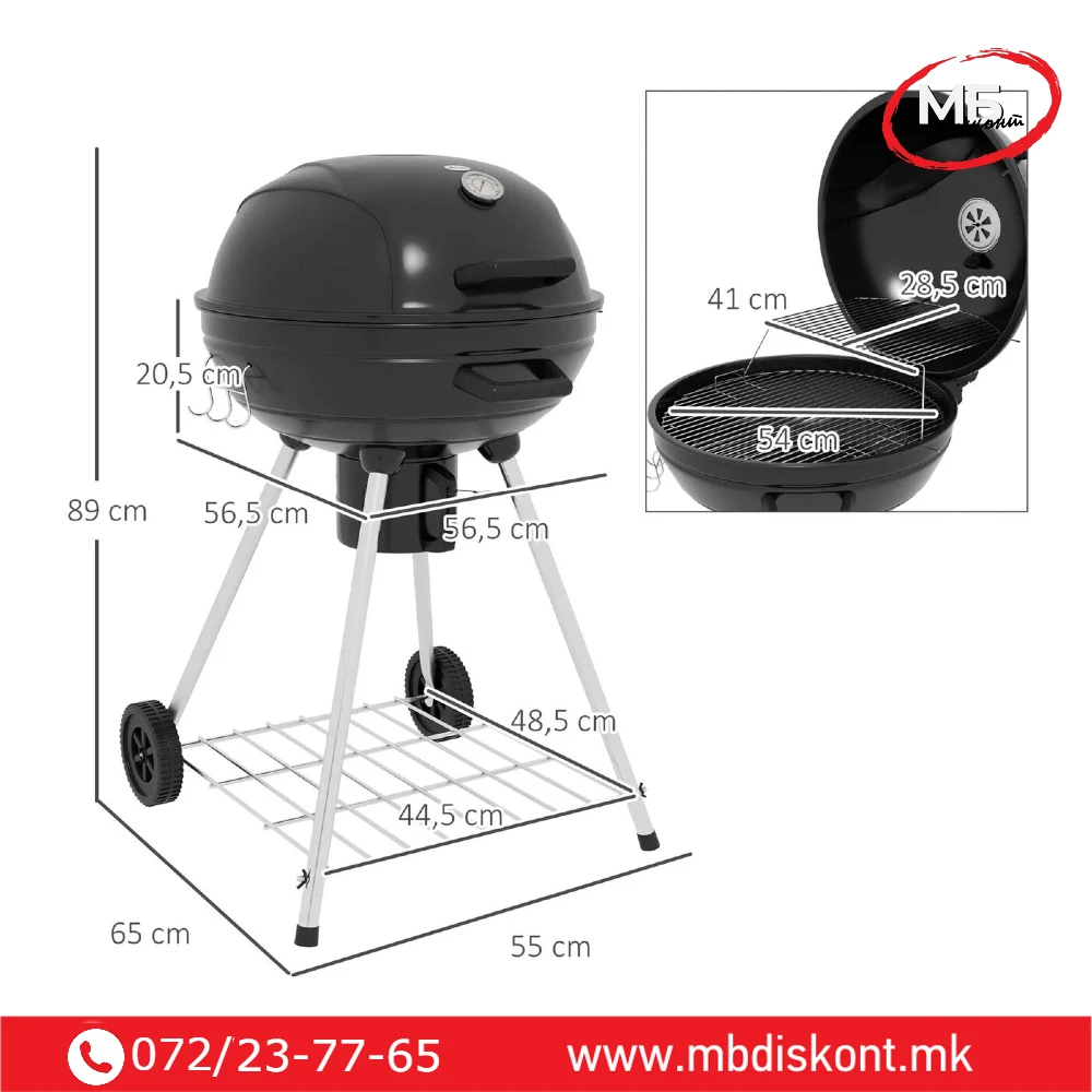 Со компактен дизајн и практичен капак, оваа скара е идеална за двор, тераса или викенд.