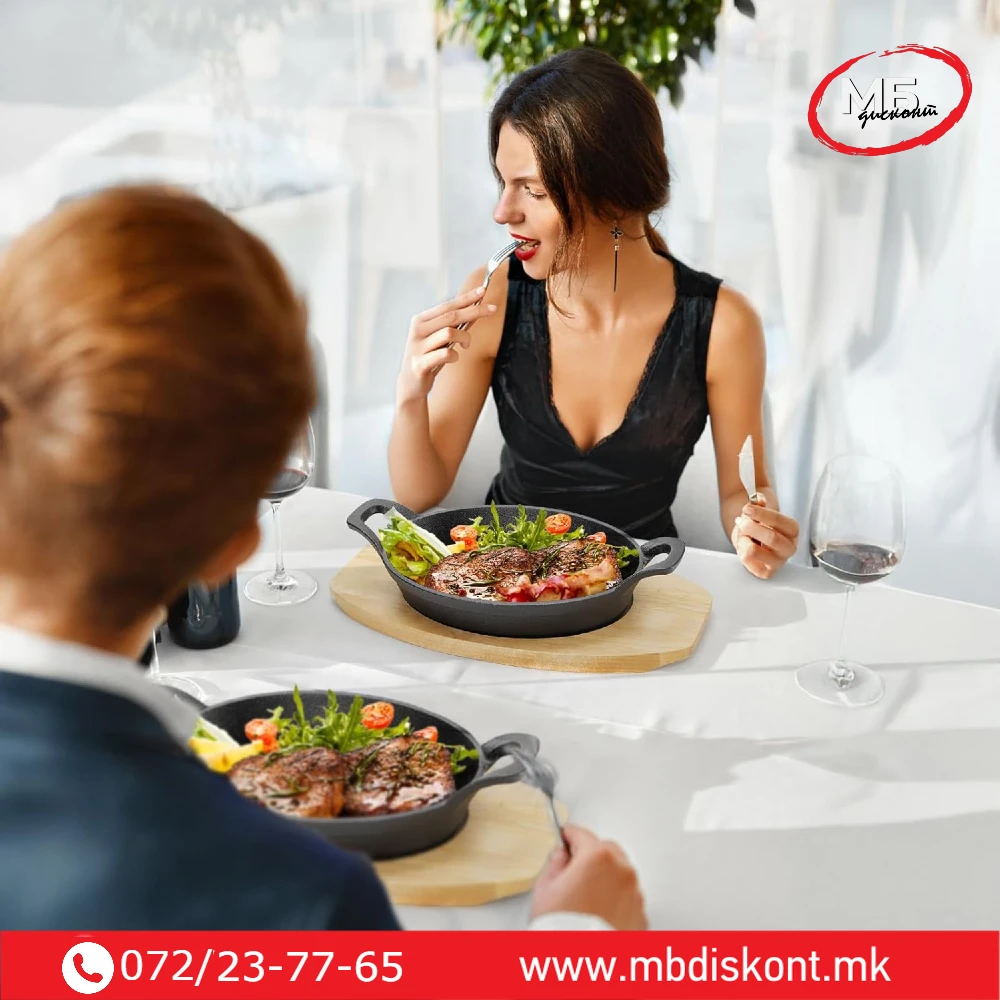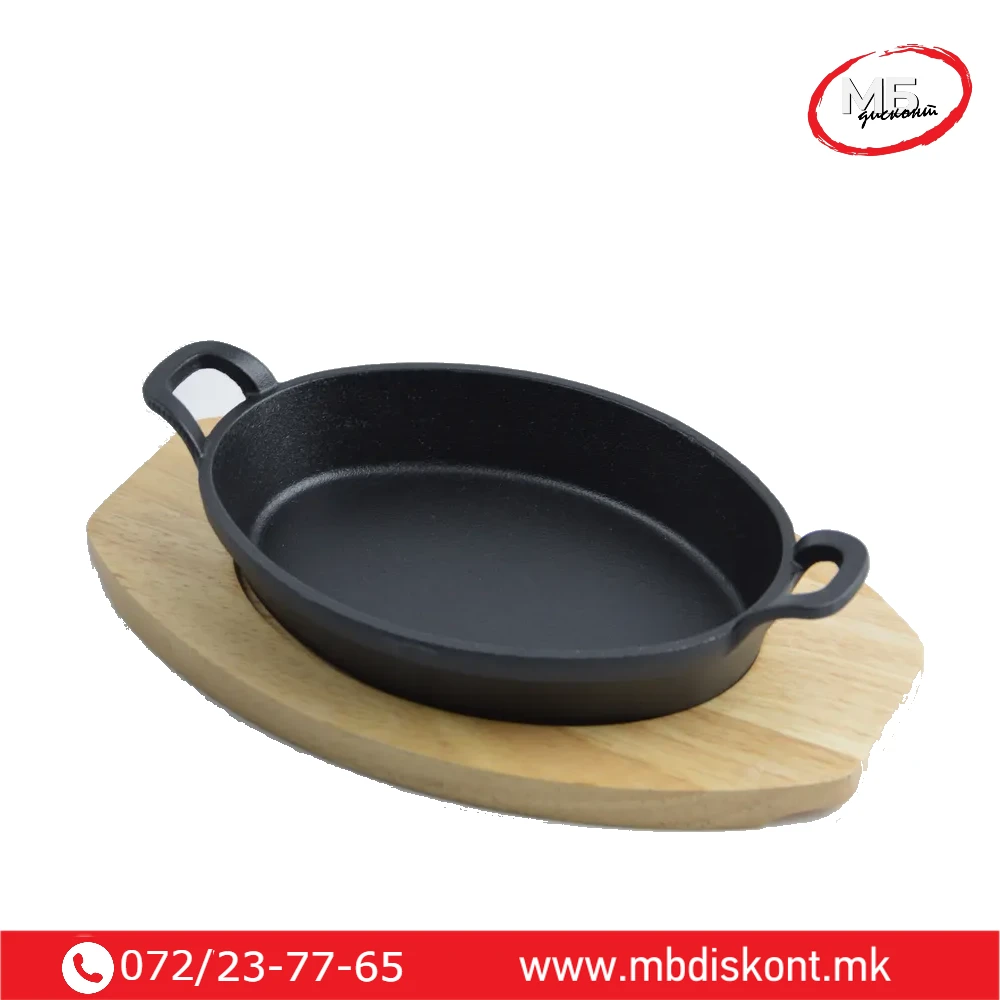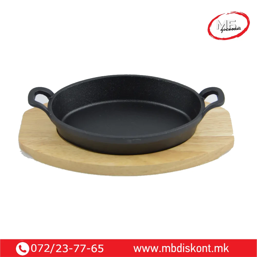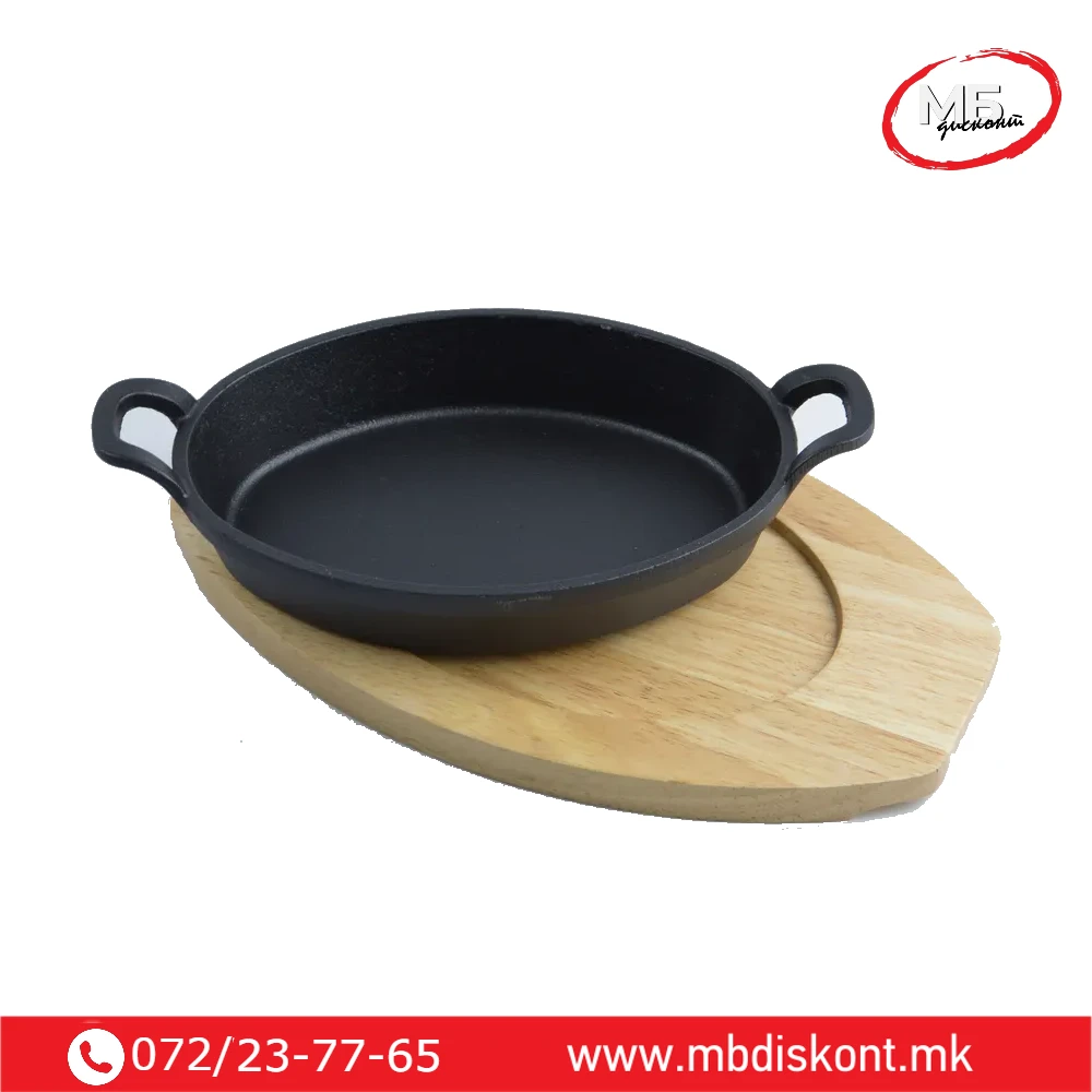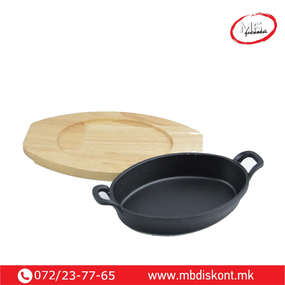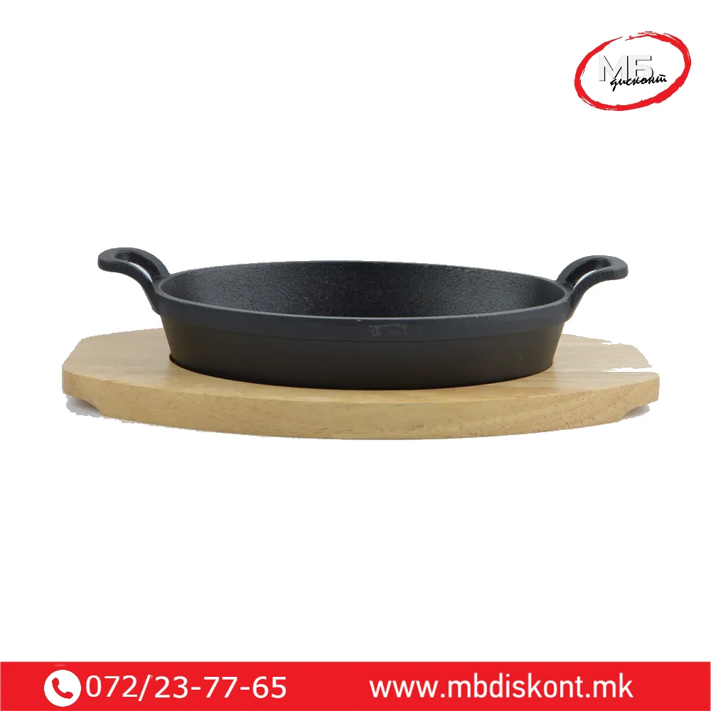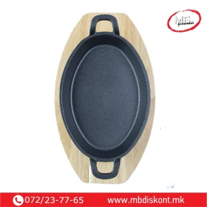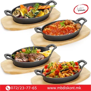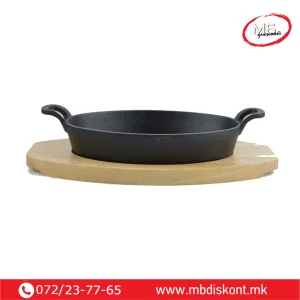 Гусена сервер тава – сет со дрвена подлога е практично и елегантно решение за подготовка и сервирање на храна со автентичен sizzling ефект.