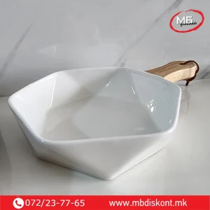 Чинија порцелан длабока со дрвена рачка е практичен и елегантен кујнски додаток кој нуди совршено решение за сервирање супи, паста, салати, јадења со сос и модерни гастро презентации.