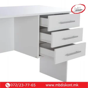 Изработено е од висококвалитетен меламин, кој обезбедува стабилност, издржливост и долготрајна употреба. Совршено е за канцеларија, студентска соба или домашен кабинет.