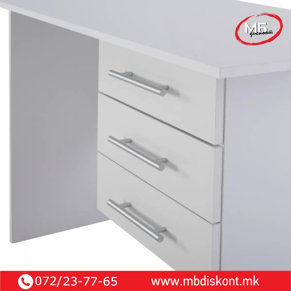 Ова работно биро од меламин во бела боја претставува совршен спој на модерен дизајн, практичност и квалитет. Со својот едноставен, но впечатлив изглед, бирото внесува чувство на просторност и чистота во секој амбиент.