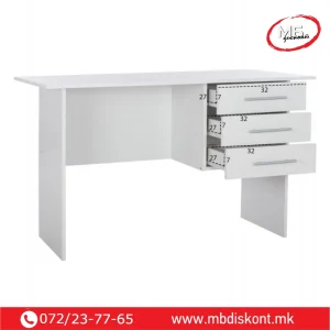 Дополнително, содржи три функционални фиоки со димензии 32×27×7 см, кои овозможуваат уредно складирање на сите канцелариски потреби.