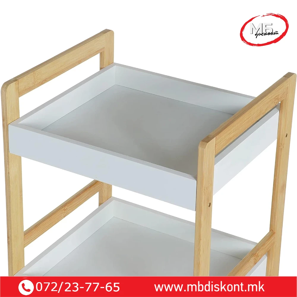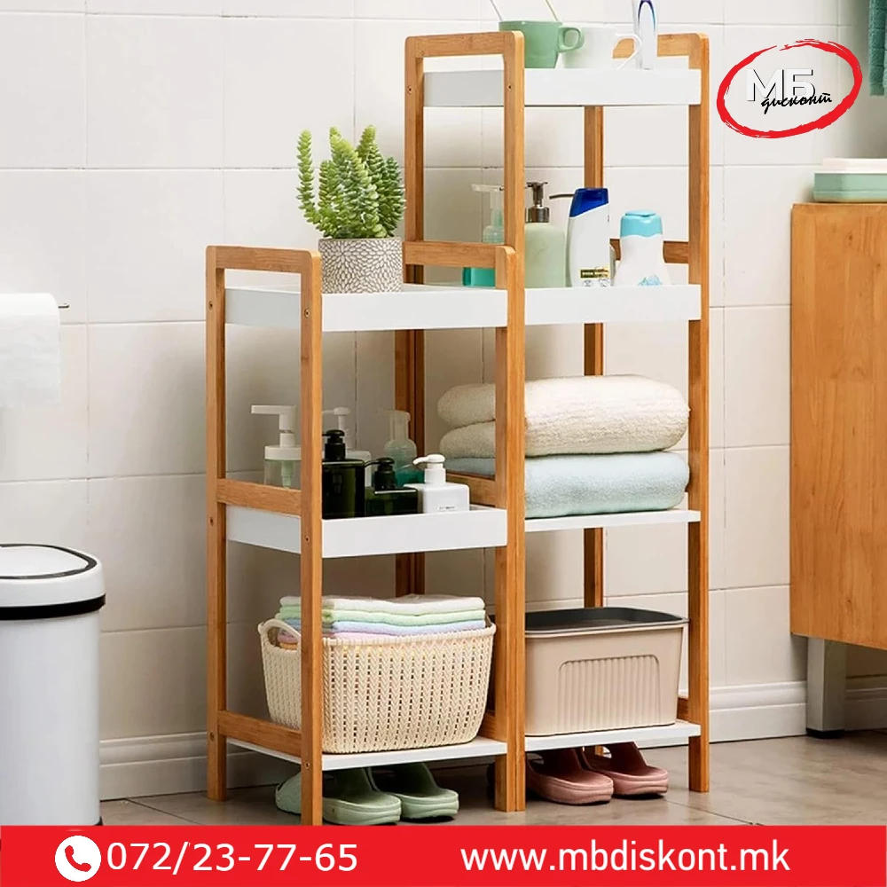 Полица бања од Бамбус со 4 прегради е практично и естетско решение за уредување на бањата или друг простор во домот.