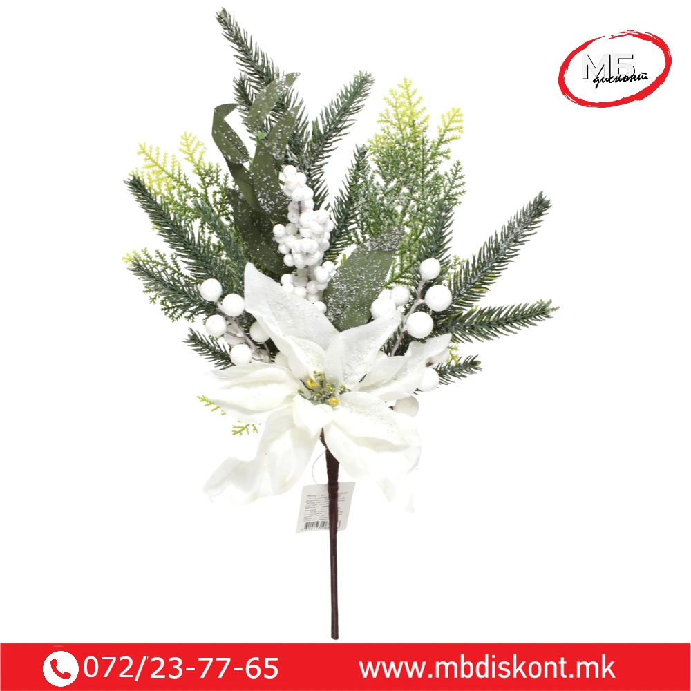 Гранка бела бобинка еуфорбија е еден од најпопуларните празнични декор елементи благодарение на нејзиниот модерен изглед, природни форми и елегантна бела нијанса.