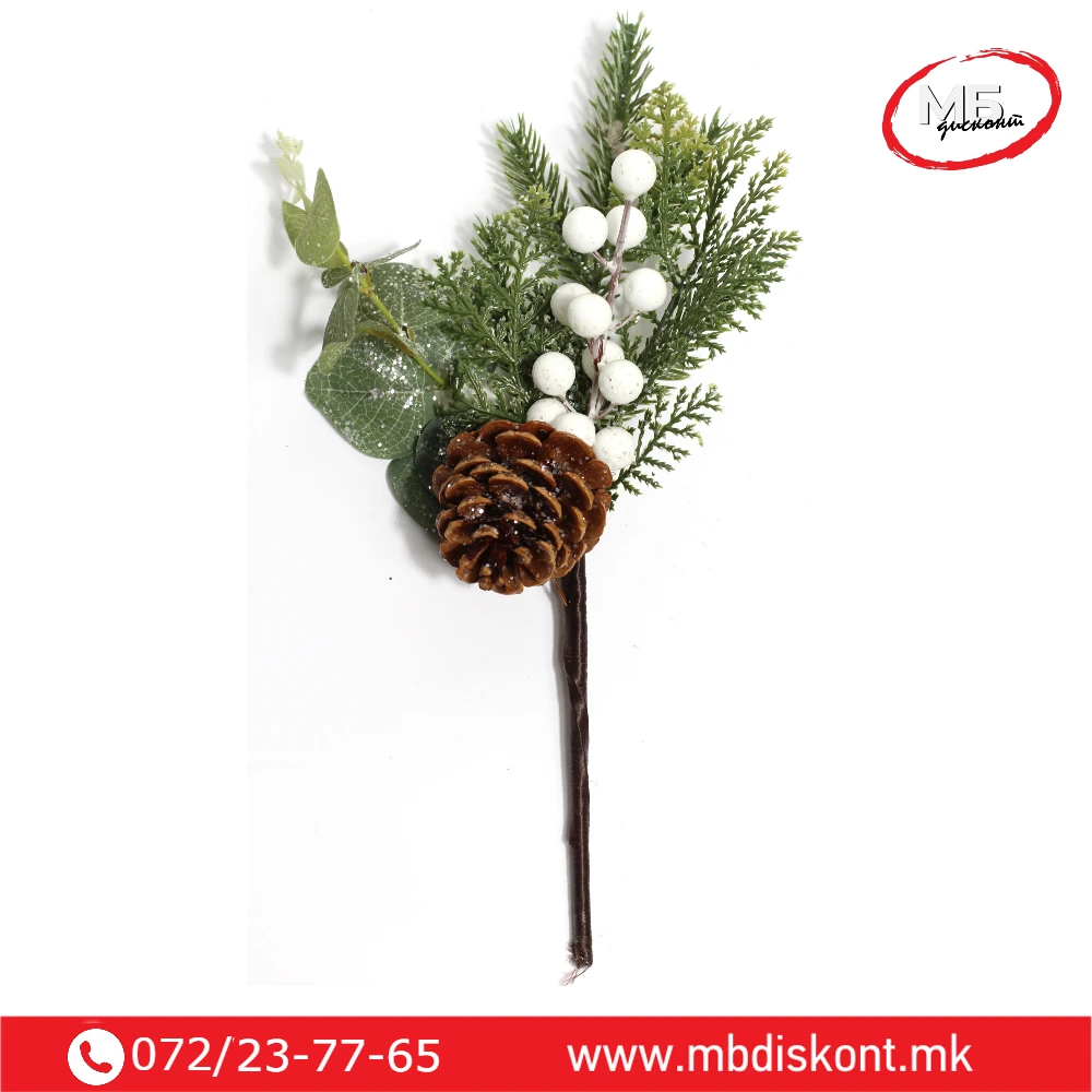 елегантен празничен амбиент. Комбинацијата од бела бобинка и мини шишарка создава автентичен зимски изглед,
