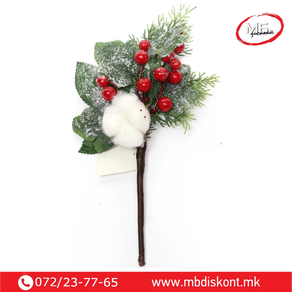 Гранка бобинка памук 30см е еден од најбараните зимски декоративни елементи благодарение на својот мек, природен и топол изглед.