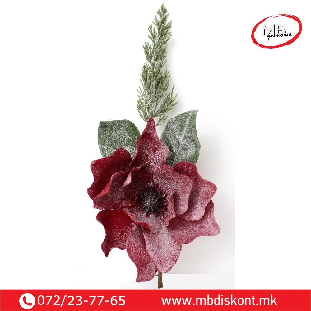 Гранка манолија бордо е меѓу најпобараните декоративни цветни гранки за внатрешна и надворешна декорација. Со својата впечатлива боја и природен изглед, оваа гранка внесува топлина и стил во секој простор. Идеална е за уредување на домот, канцеларијата, свадбени аранжмани или празнични декорации.