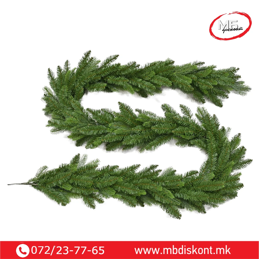 Изработена е од висококвалитетен ПВЦ материјал со густина која овозможува богат изглед. Гранките се флексибилни, лесни за обликување и отпорни на деформации. Со своите 220 типс гранчиња, герландата создава реалистичен и празничен визуелен ефект.