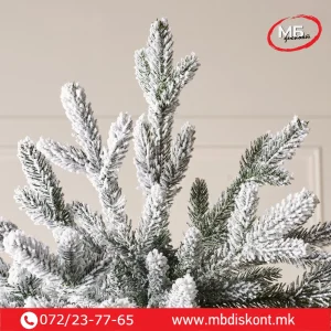 Елката е изработена од премиум материјали кои гарантираат долг век на траење. Гранките остануваат густи и стабилни, а снежниот ефект не паѓа лесно.