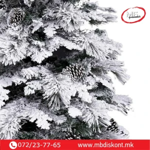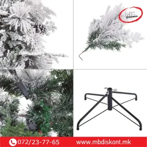Овој модел комбинира зелени и бели гранки, создавајќи модерен контраст што изгледа свежо, празнично и многу декоративно. Благодарение на квалитетната изработка и реалистичниот изглед, елката е совршена за секој дом, канцеларија или комерцијален простор.