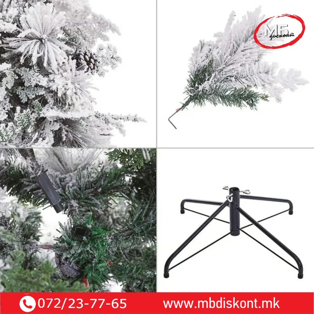 Монтажата трае само неколку минути – едноставно распоредете ги трите делови, фиксирајте ги гранките и уживајте во совршена зимска елка.