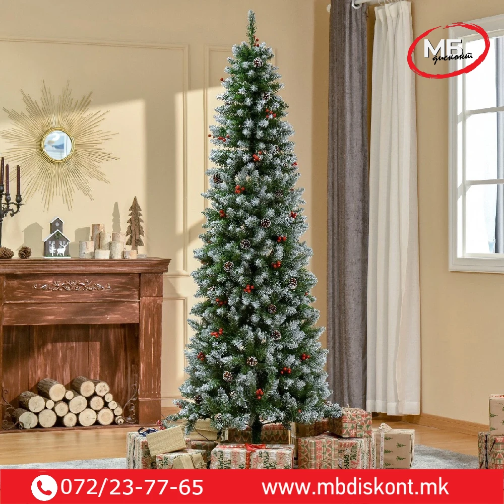 Снежна Слим Елка со Бобинки– празнична магија за вашиот дом