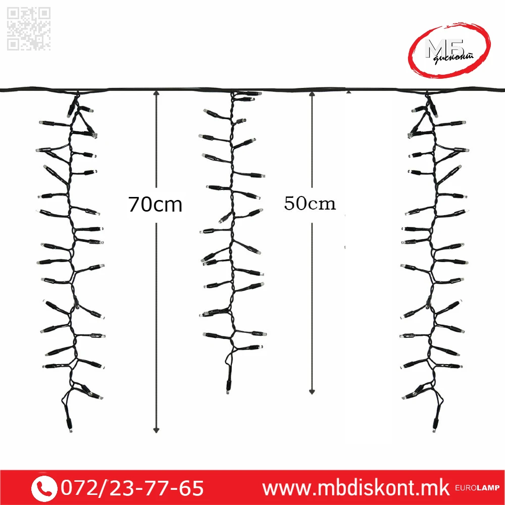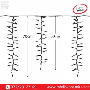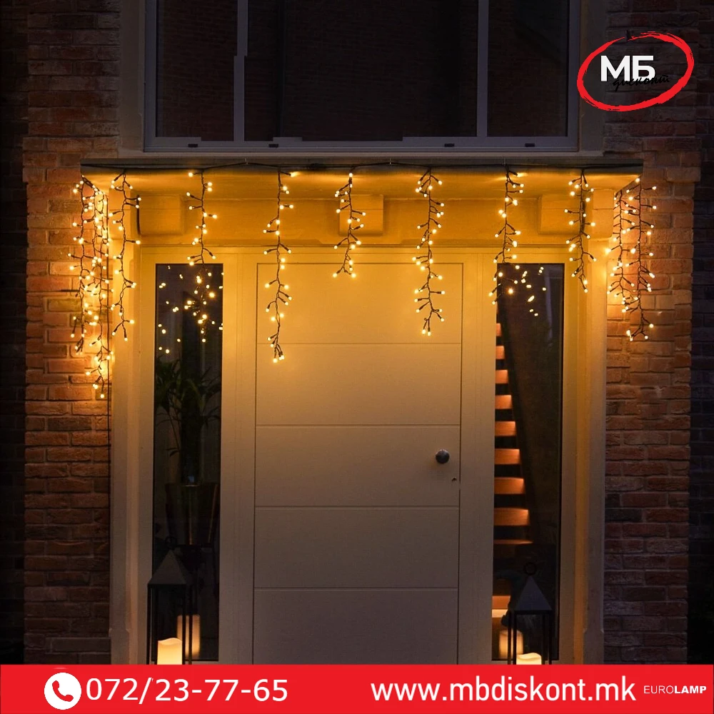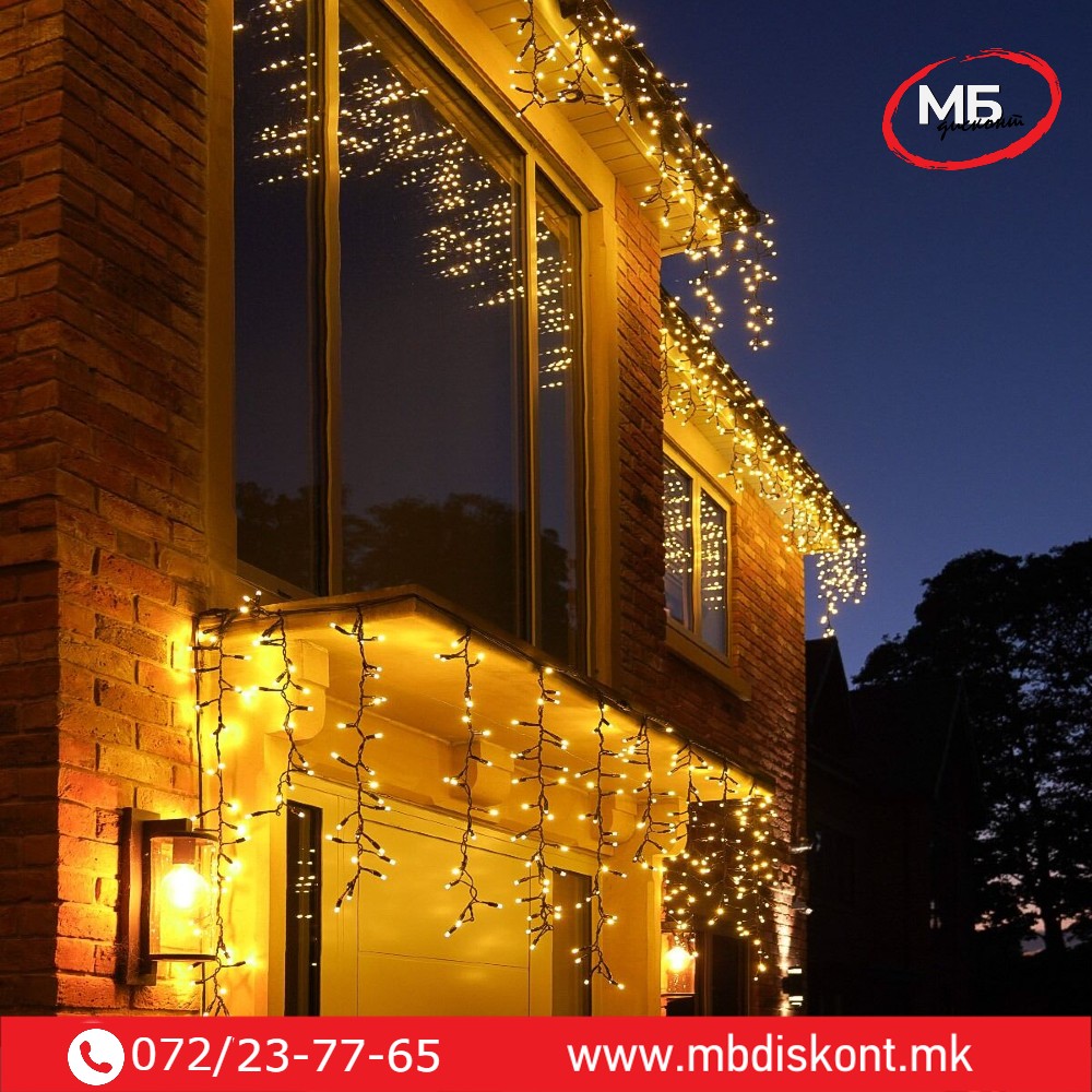 LED Icicle светилки се еден од најбараните производи за празнично и целогодишно осветлување на фасади, тераси и излози. Овој модел со 288 LED светилки создава впечатлив „леден“ визуелен ефект кој додава елегантен сјај во секој надворешен и внатрешен простор. Топлото бело светло создава пријатна атмосфера и ја истакнува архитектурата на секоја површина.