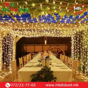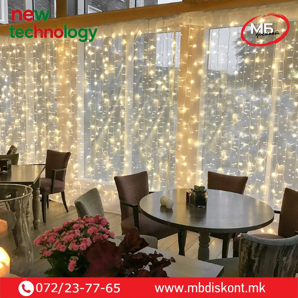 ✨ Сијалички завеса 300×300 cm со 480 LED е впечатлива декоративна светлосна завеса,