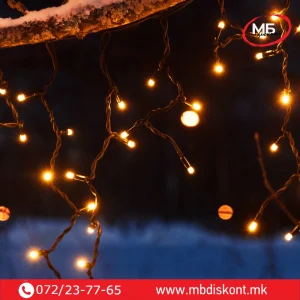 Сијалички завеса В100 × Ш300см 120+30 LED профи е професионално LED осветлување создадено за оние кои бараат стабилна, силна и висококвалитетна празнична декорација.