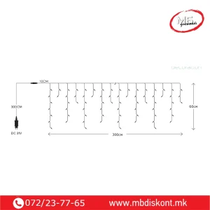 Сијалички завеса В60×Ш300см 144LED – Комбинирано постојано и трепкачко осветлување