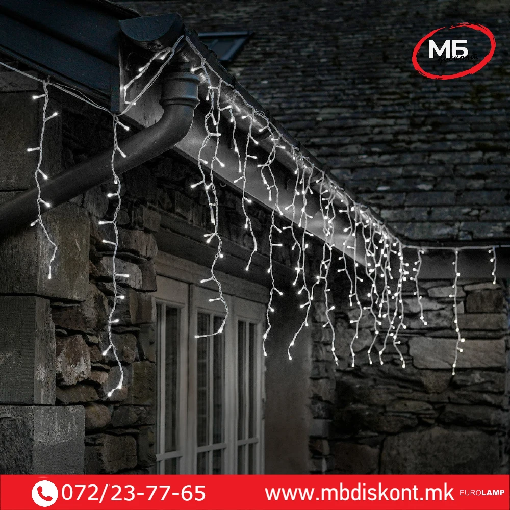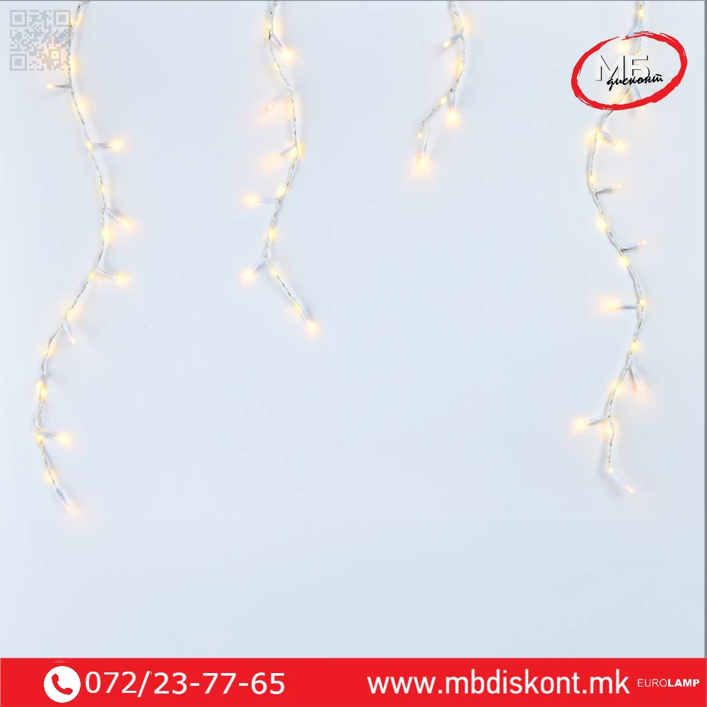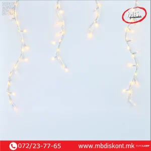 Сијалички завеса В60×Ш300см 144LED е идеален избор за сите што сакаат динамичен, но истовремено топол празничен амбиент.