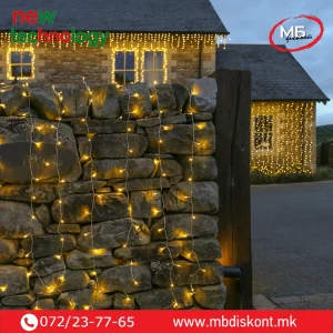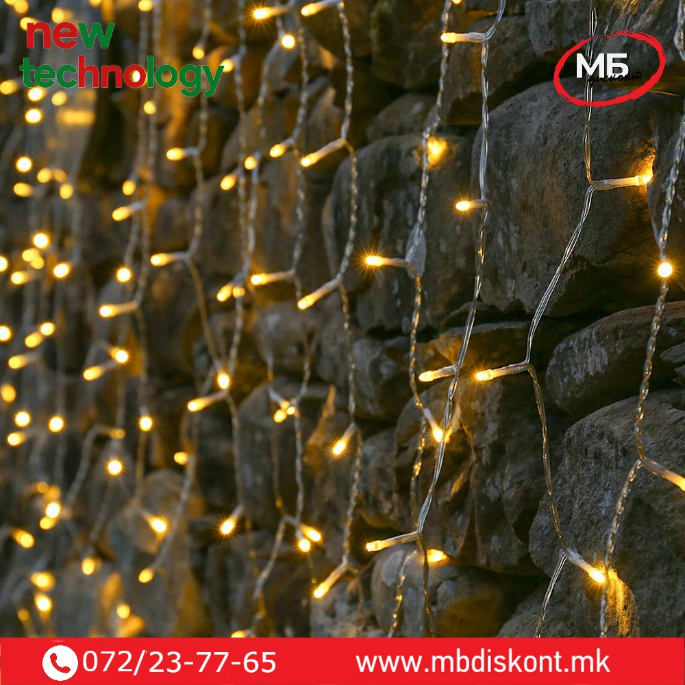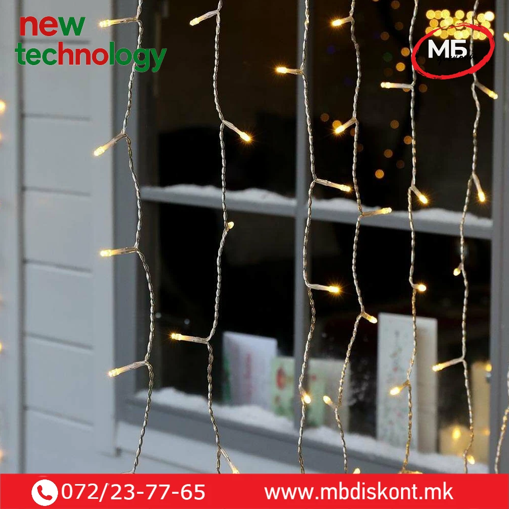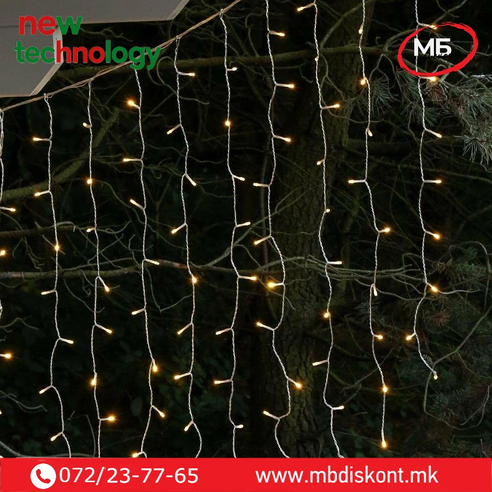 Сијалицки завеса 100×200см 240LED – Топол бел блесок за магична атмосфера