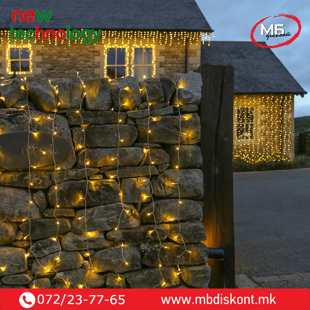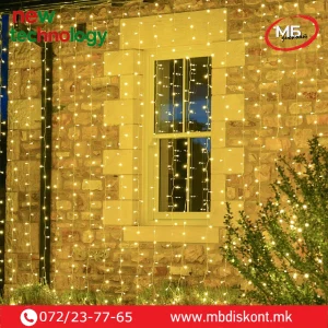Сијалицките завеса 100×200см 240LED создаваат топла и романтична светлина која внесува празнична атмосфера во секој дом, локал или излог. Оваа завеса со LED светилки е идеална за Нова година, свадби, родендени и сезонски декорации. Топол бел тон од 1900–2000K дава мека и пријатна светлина која не заморува и изгледа природно. Направена е од квалитетен транспарентен PVC кабел и чипови со големина од 5mm, што осигурува долготрајност и стабилно светење.