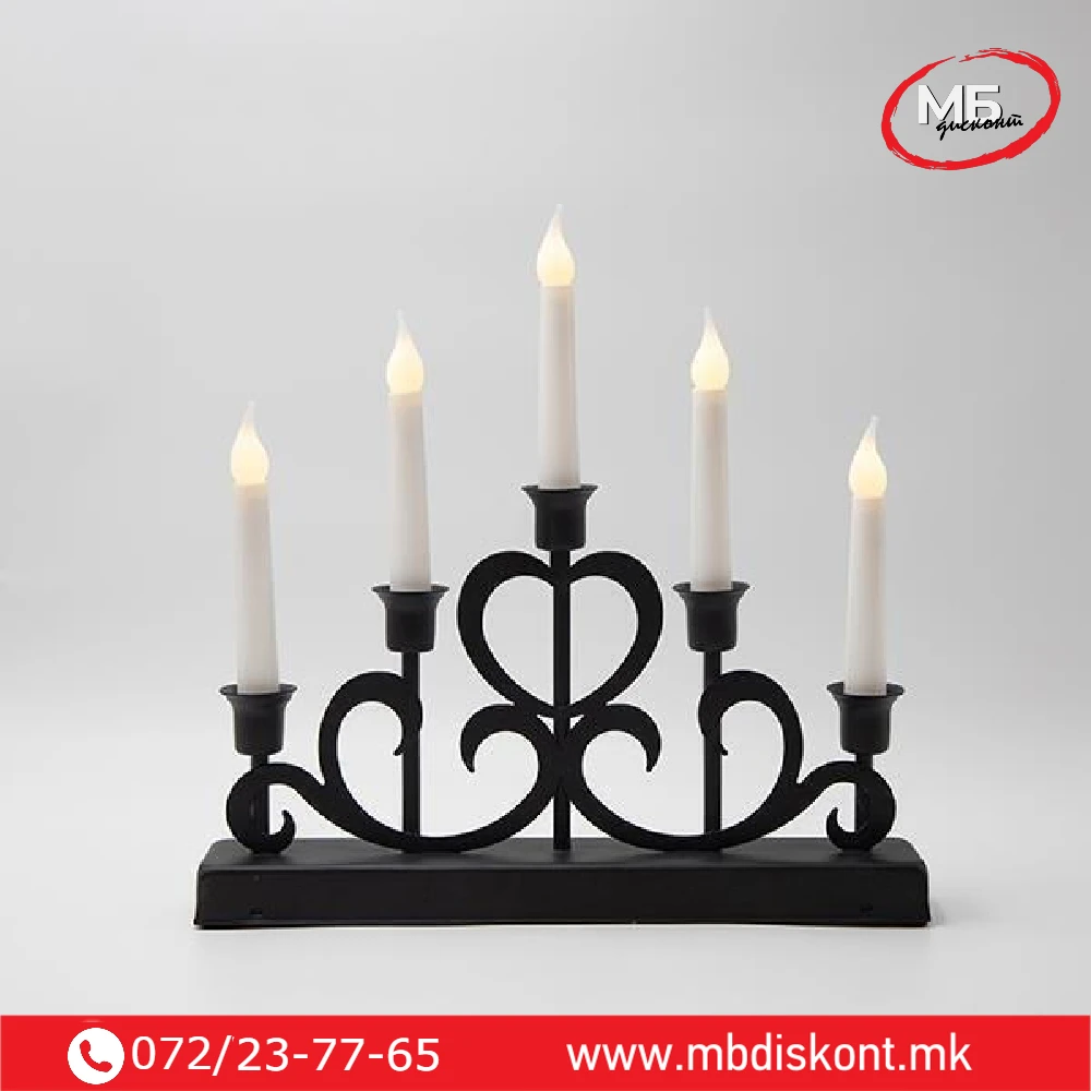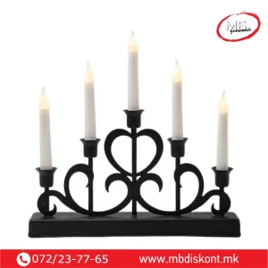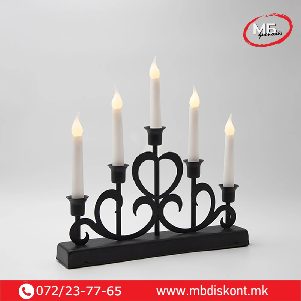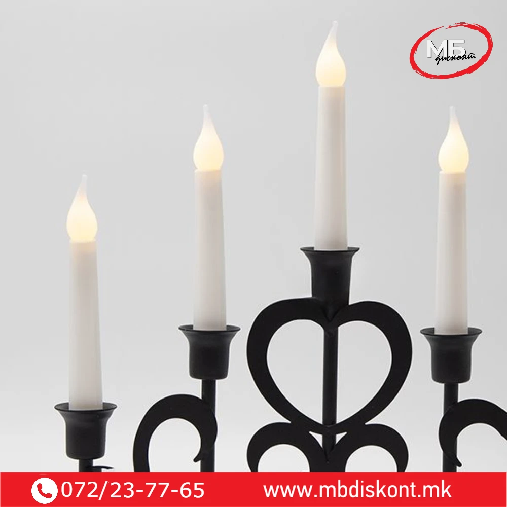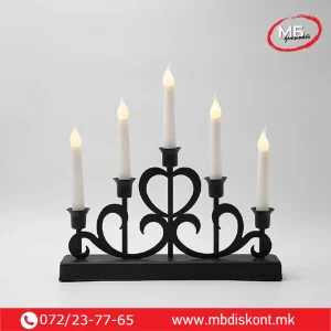 Овој божиќен свеќник работи на батерии, што овозможува целосна слобода при поставување.