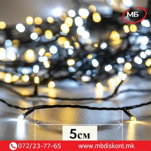 Растојанието од 5 cm меѓу светилките дава густ и полн светлосен ефект, совршен за елки, балкони,