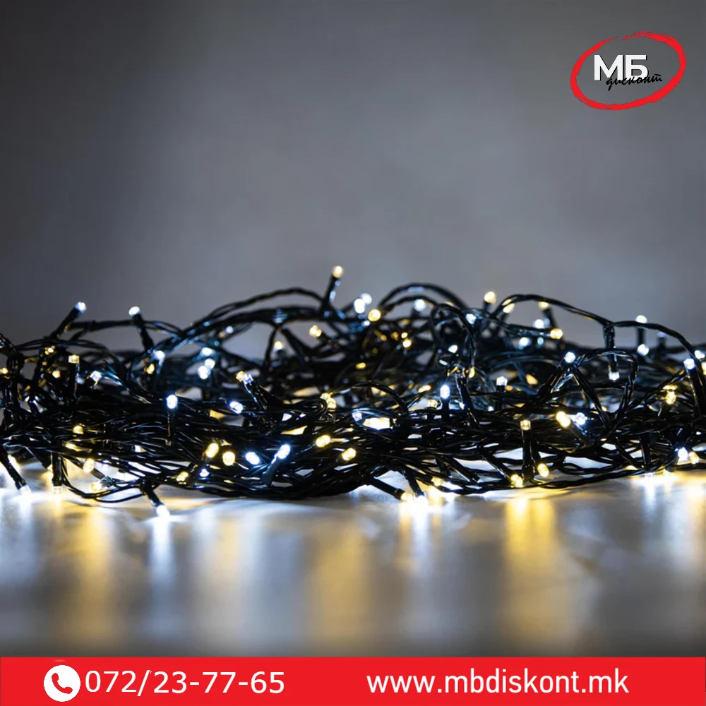 3m кабел до приклучок и вкупно 200 LED светилки, оваа герланда создава густо,