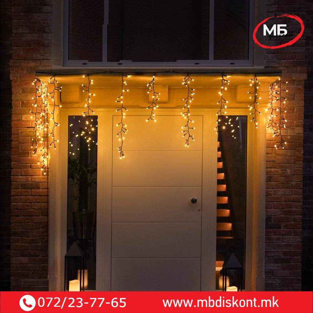 Сијалички завеса В70хШ900см 300LED претставува идеално светлосно решение за празнични декорации, новогодишни поставки и сезонски украси.